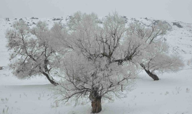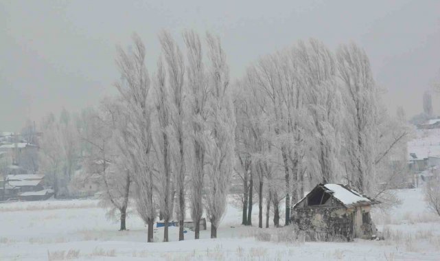 Kars'ın soğuğu vatandaşın kirpiklerini dondurdu. Soğuktan kent genelinde ağaçlar kırağı tuttu.