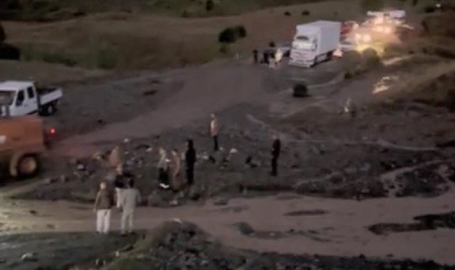 Jandarma ve polis ekiplerinin güvenlik önlemleri aldığı bölgede karayolları ve özel idareye ait iş makinalarıyla kapanan karayolunun açılması için çalışma başlatıldı.
