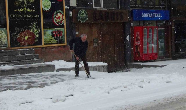 Öte yandan, kar yağışıyla birlikte vatandaşların kar mücadelesi de başladı. İş yerlerini açan vatandaşlar, iş yerlerinin önündeki karı temizledi. Ayrıca kentin tarihi simgelerinden Kars Kalesi çevresi de yeniden beyaz örtüyle kaplandı.