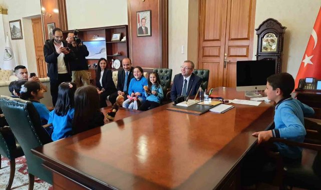 Atatürk'ün çocuklara armağanı olan 23 Nisan Ulusal Egemenlik ve Çocuk Bayramı'nda kenti yönetenler, sembolik de olsa makamlarını çocuklara devrediyor. Milli Eğitim Müdürü Nevzat Kaya, 30 Ekim Toplu Konutlar İdaresi İlkokulu öğretmen ve öğrencileriyle birlikte Vali Ziya Polat'ı makamında ziyaret etti.