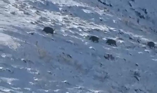 Kars'ta etkili olan sert kış şartları ve kar örtüsünün uzun süre yerde kalması nedeniyle yiyecek bulmakta zorlanan yaban domuzları, sürüler halinde yerleşim yerlerine inmeye başladı. Özellikle köylere yakın bölgelerde görülen domuz sürüleri, cep telefonuyla kaydedildi.