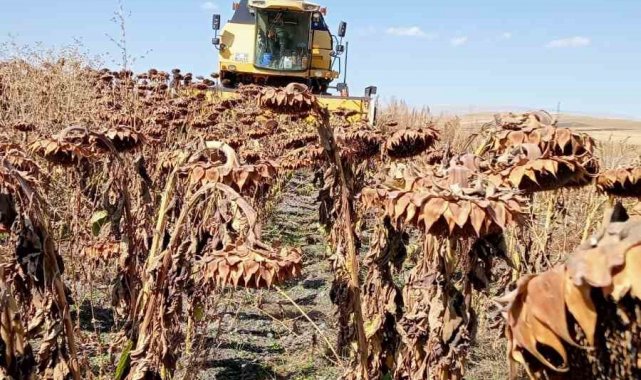 Kars'ta yağlık ayçiçeği hasadı başladı.