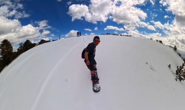 Sarıkamış Kayak Merkezi'nde snowboardla kayarak aşağıya inen genç, o anları sosyal medya hesabından paylaştı. "Nisan ayında snowboard keyfi" başlığıyla paylaşılan video bir anda sosyal medyada gündem oldu. Paylaşılan görüntülerde gençlerin zirveye çıkması, kar üzerinde oturma ve bir gencin snowboardla tişört ve şortla kayması yer alıyor.