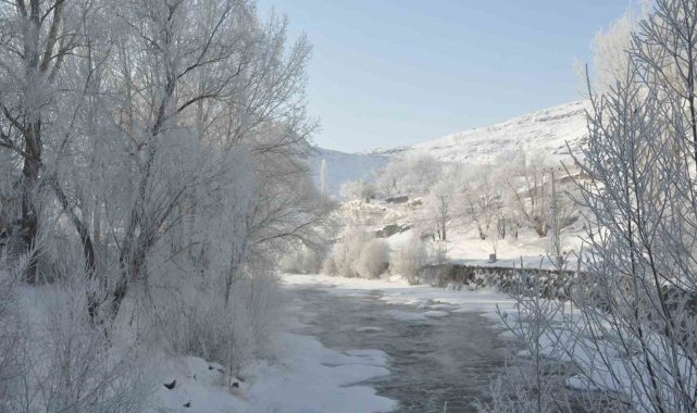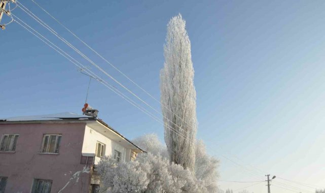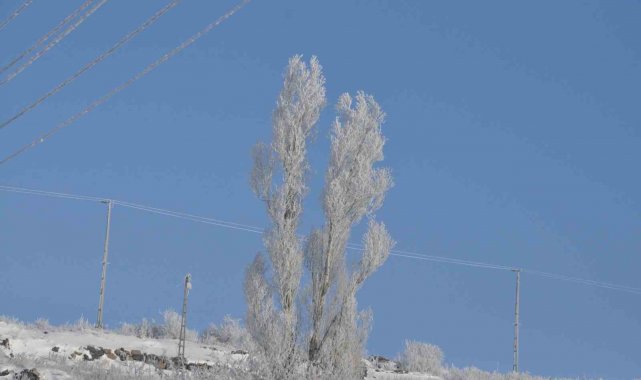 Kars'ta, hava sıcaklığının sıfırın altında 17 dereceye düşmesiyle birlikte doğa adeta beyaz bir örtüyle kaplandı. Kentte etkili olan sis ve soğuk havanın ardından ağaçların üzerini kaplayan kırağı, seyrine doyumsuz görüntüler oluşturdu.