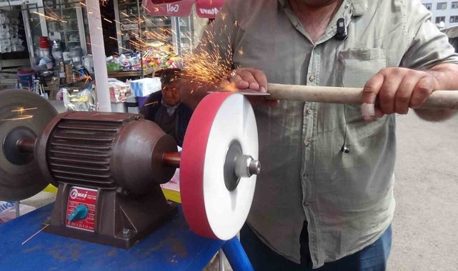 Baba mesleği bıçakçılığı yıllarda devam ettirdiğini belirten Suat Kılıç, "Kurban Bayramı geldi, milletin bayramda kullanacağı bıçaklara bilemeye çalışıyoruz. Yetiştirmeye çalışıyoruz. Yoğunluk var" diye konuştu.