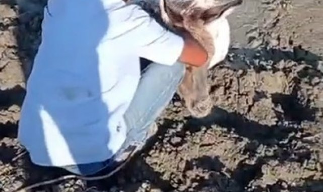 Eşeğin çamurdan kurtarılma operasyonu başarıyla sonuçlanırken, eşeği kurtaran vatandaşlar kendi aralarında konuşmaları güldürdü.