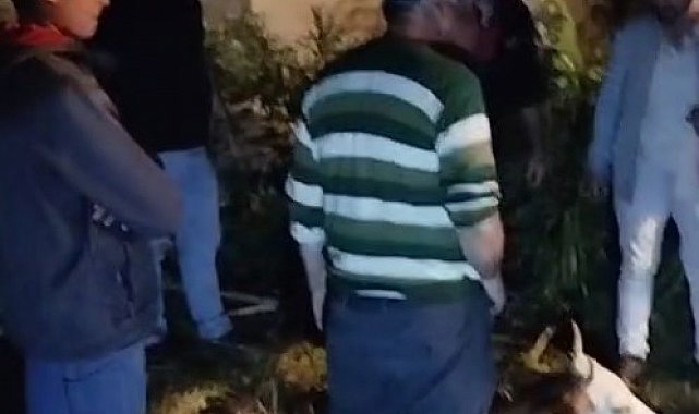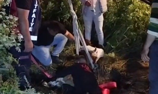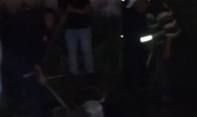 İhbar üzerine olay yerine kısa sürede ulaşan itfaiye ekipleri, hayvanın düştüğü çukurun dar olması ve hayvanın ağırlığı nedeniyle kurtarma çalışmalarına başladı. Uzun uğraşlar sonucunda, foseptik çukurun etrafı kırılarak genişletildi.