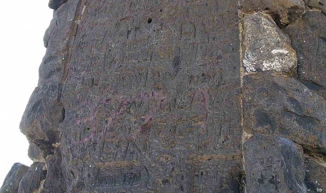 Yapının Ani Örenyeri'ne bakan kısmında, düz bir taş üzerine işlenmiş yaklaşık 2 metre yüksekliğinde bir kitabe yer alıyor. Ancak bu taş üzerindeki yazıların hangi dilde olduğu bugüne kadar çözülemedi. Bölge halkı, bu yazıların antik bir uygarlığa ait olabileceğini düşünürken, uzmanlar da alanda detaylı bir inceleme yapılması gerektiğini belirtiyor.