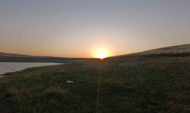 Erken saatlerde uyanan gökyüzünde beliren o eşsiz renk cümbüşüne tanıklık etti. Baraj golüyle bütünleşen gün doğumu, kartpostal görüntü ortaya çıkarlardı. Bulutların arasına süzülen kızıl ve turuncu tonlar, Kars'ın güzelliğini birkez daha gözler önüne serdi.
