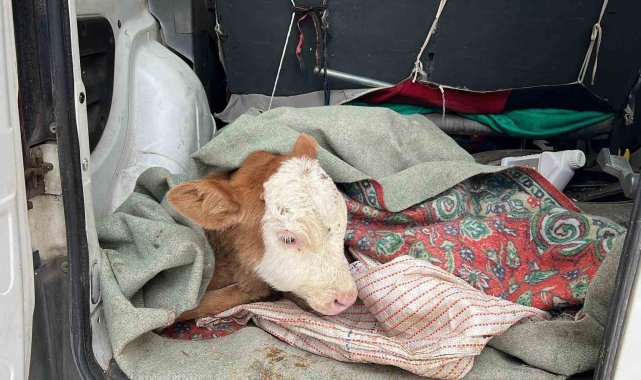 Kars'ta hasta buzağısını aracıyla veterinere getirdi