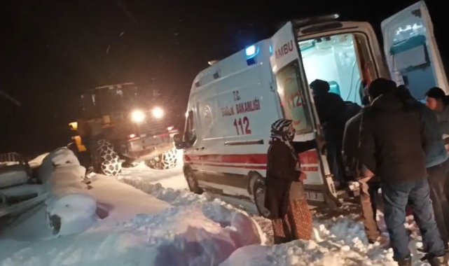 Kars'ta hasta kadın için ekipler karlı yolları aştı