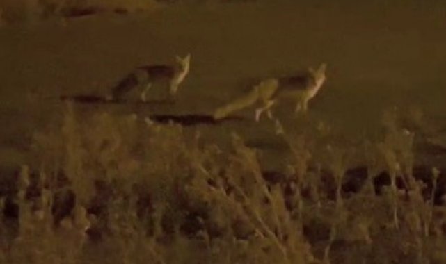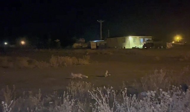 Kars'ın Akyaka'ya ilçesine bağlı Duraklı köyüne inen 2 tilki yiyecek aradı. Tilkileri gören vatandaş ise o anları cep telefonuyla kaydetti.