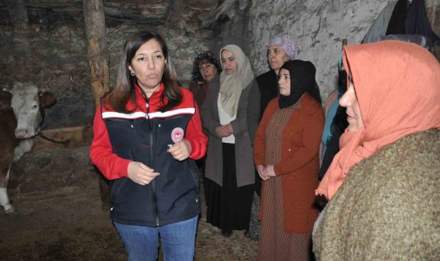Kadın çiftçilere eğitim veren Tarım ve Orman Müdürlüğü personellerinden Veteriner Hekim Serap Kaya Aydın, "Süt Sığırcılığında Sağım Hijyeni ve Sanitasyon eğitimi 5 gün boyunca düzenledik. Merkez Esenkent köyünde, 26 kadın çiftçimiz eğitime katılım gösterdi. Bugün eğitimimizin son günü sınavla eğitimimizi tamamlayacağız. Öncelikle hayvan yetiştiriciliğinde aktif görev alan kadın çiftçilerimizin bilgi ve donanımlarını artırmak amaçlıydı. Bu anlamda ne tür eğitimler verdik. Sütün yağısı, sütün kalitesi ve hijyenik faktörler, süt hijyeni, süt sağım teknikleri, sağım ünitelerinin bakımı, temizliği ve hijyenik durumunun devam ettirilmesi, sütün uygun şartlarda depolanması ve meme hastalıklarından bahsettik. Yine son olarak kişisel bakım ve temizlik kurallarından bilgiler vererek eğitimimizi tamamladık" diye konuştu.