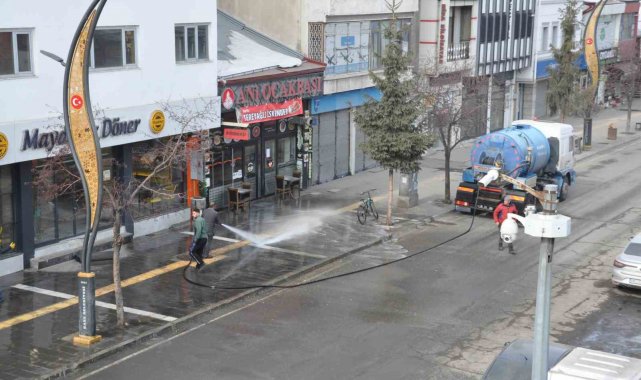 Kars'ta kaldırımlar tazyikli suyla yıkanıyor