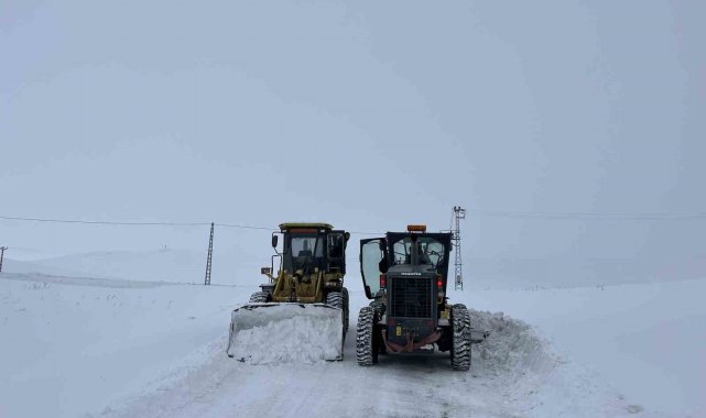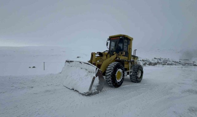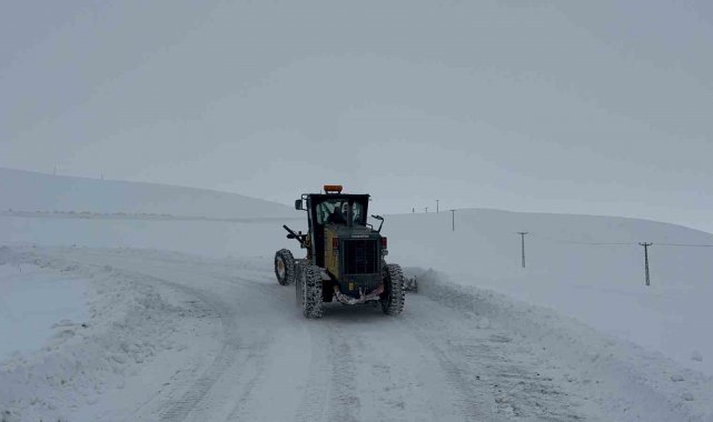 Kars'ta kar kaplanlarının 2 bin 100 rakımlı köy yollarında karla mücadelesi gece gündüz demeden devam ediyor.