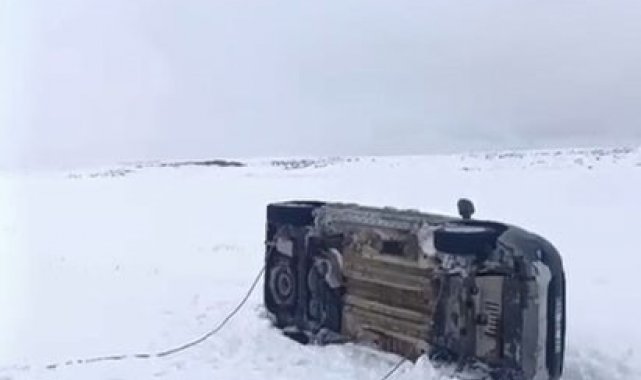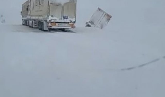 Kars'ın Arpaçay ilçesinde kar yağışı ve tipiden dolayı tırlar yoldan çıktı, bir otomobil ise şarampole uçtu. Kazada otomobil sürücüsü yaralandı. Tırlarda ise maddi hasar oluştu.