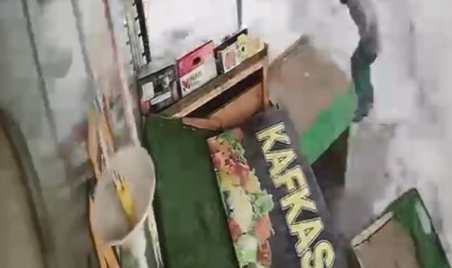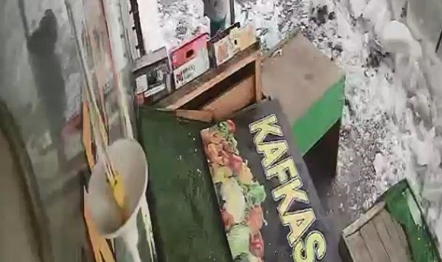 Olay Ahmet Aslan Caddesi'nde meydana geldi. Kaldırımda yürüyen bir vatandaş, binadan kopan buz ve kar kütlesi üzerine düşmesinden son anda kurtuldu. O anlar cadde üzerinde bulunan işyerinin güvenlik kamerasına yansıdı.