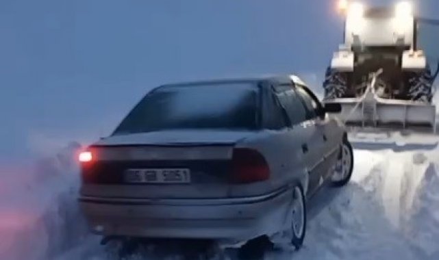 Mahsur kaldığı yerden kurtarılan otomobil daha sonra yoluna devam etti.