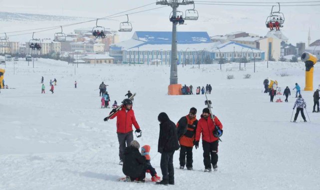 Kars'ta kayağını kapan Sarıkamış'a koştu. Sarıkamış Kayak Merkezi'ndeki yoğunluk böyle görüntülendi.