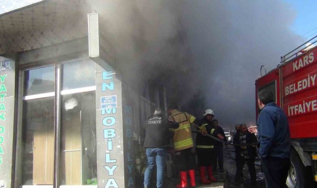 Kars'ta korkutan yangın: Mobilya deposu alevlere teslim oldu