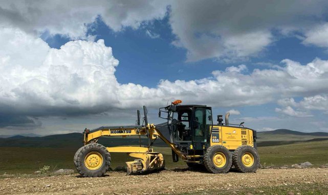 Kars'ta köy yolları tek tek yapılıyor. Yolları yapılan köylülerin yüzleri gülüyor.