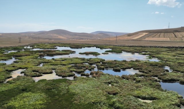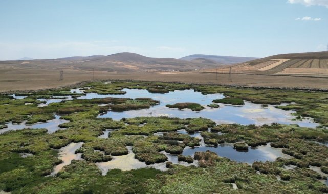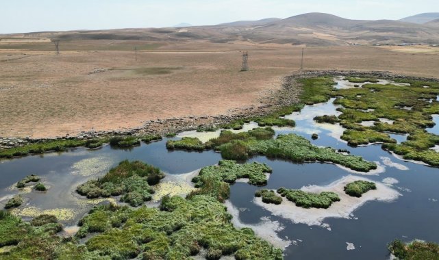 Kars'ta kuraklığın vurduğu Çalı Gölü'nü kuşlar terk etti. Kuş seslerinin yükseldiği gölün içerisinde adacıklar oluştu.