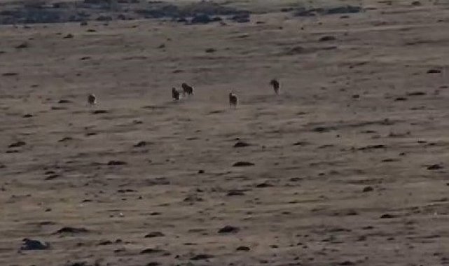 Kars'ta Hanlar Geçidi bölgesinde kurt sürüsü, cep telefonu kamerasıyla görüntülendi.
