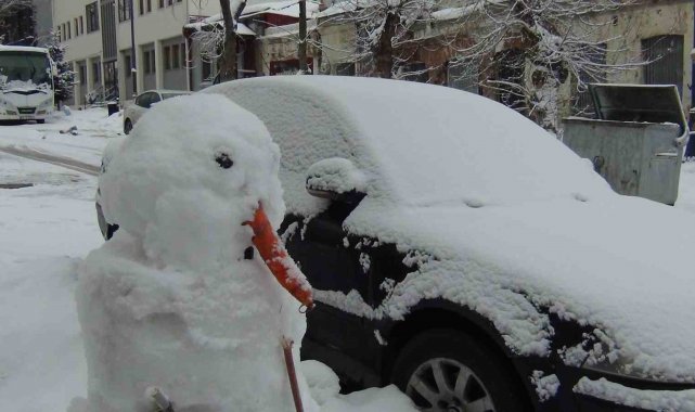 Kentte sabah erken saatlerinde işlerine gitmek üzere dışarı çıkan vatandaşlar, beyaza bürünen caddeler de yürürken, araçların üzerinde ise kar kütleleri oluştu.
