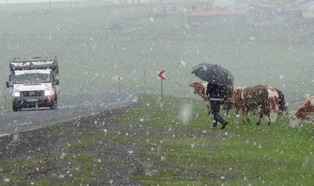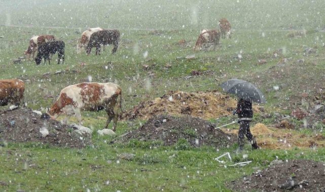 Kars'ta Mayıs ayında yağan lapa lapa kar şaşırttı. Yüksek kesimler kısa sürede beyaza bürünürken, hayvan yetiştiricileri ise kar yağışına hazırlıksız yakalandı.
