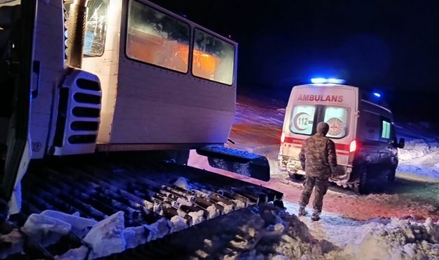 Kars'ta eksi 30 derece soğukta sınırı bekleyen Mehmetçik, köyde mahsur kalan yaşlı hasta kadını paletli iş makinesiyle ulaşarak hastaneye yetiştirdi.