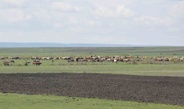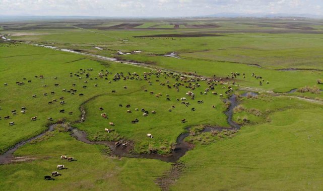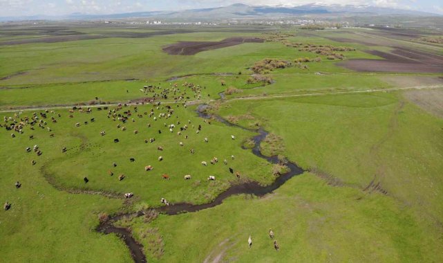 Kars'ta meralarda büyükbaş ve küçükbaş hayvan sesleri yükseliyor. Uzun ve zorlu geçen kışın ardından hayvan yetiştiricileri hayvanlarını meralarda otlatmaya başladı.