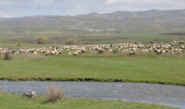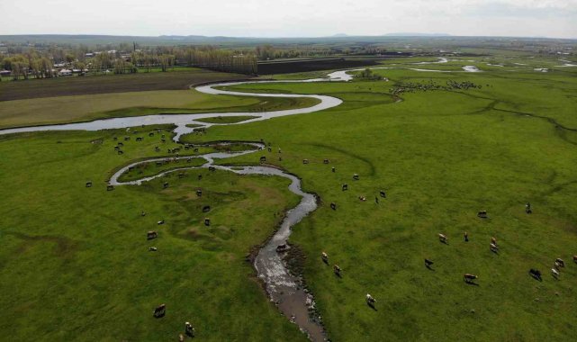 Öte yandan, bahar ayın ile birlikte yeşeren meralara yayılan hayvanlar, kameralara yansıdı. Büyük ve küçükbaş hayvan sürülerini yeşeren meralara çıkararak otlatmaya başladı. Arpaçay çayının etrafında yayılan hayvanlar renkli görüntüler ortaya çıkardı.