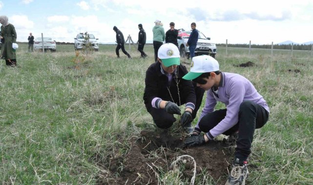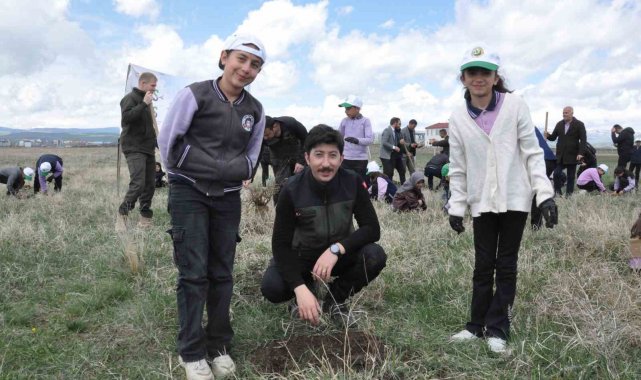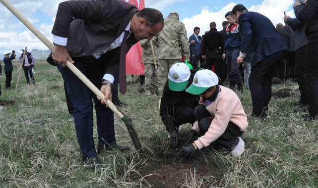 Selim'de düzenlenen meyve fidanı dikimine Vali Ziya Polat, protokol üyeleri, öğretmenler ve öğrenciler katıldı.