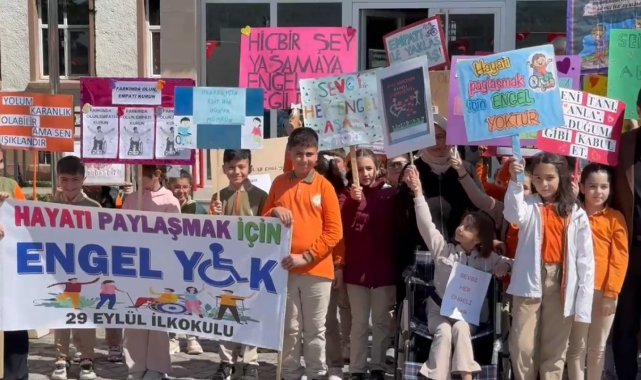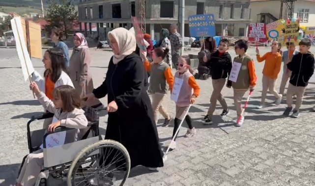 Sarıkamış'ta, engelli bireylerin toplumsal hayata daha fazla katılımını desteklemek amacıyla anlamlı bir etkinlik düzenlendi. Minik yürekler ellerinde "Hayatı Paylaşmak İçin Engel Yok" pankartlarıyla engellilere destek olmak için yürüyüş yaptı. Bazı öğrenciler ise gözlük taktı, tekerlekli sandalyeye binerek arkadaşlarına destek verdi.