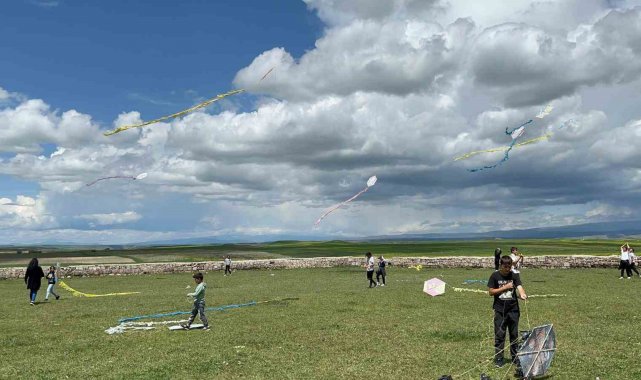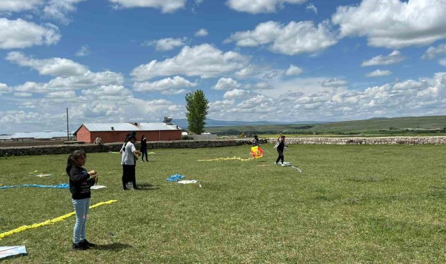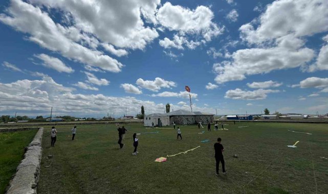 Kars'ta öğrenciler düşe kalka uçurtma uçurdu