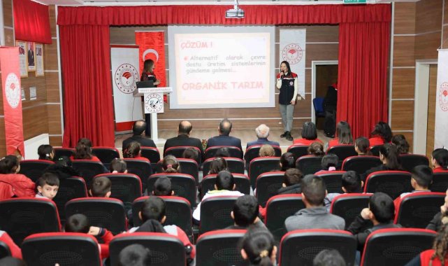 Tarım ve Orman Müdürü Enver Aydın ve İl Milli Eğitim Müdürü Nevzat Kaya'nın katılımlarıyla, Mehmet Akif Ersoy Ortaokulunda verilen eğitimde öğrencilere, toprak analizi, doğal gübre kullanımı, zararlılarla biyolojik mücadele ve organik ürün yetiştirme yöntemleri anlatıldı.
