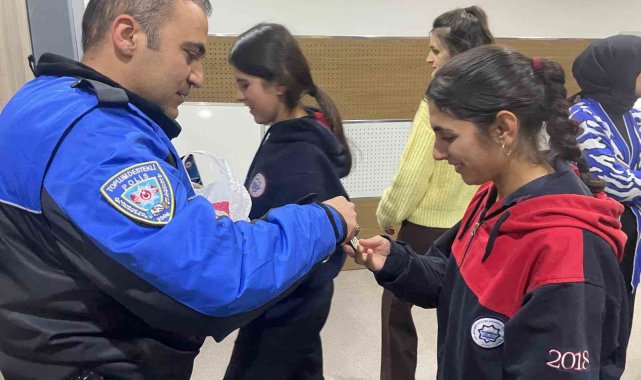 Etkinlik sonunda öğrencilere, dolandırıcılık türleri ile ilgili broşür dağıtıldı, polis logolu anahtarlık hediye edildi.