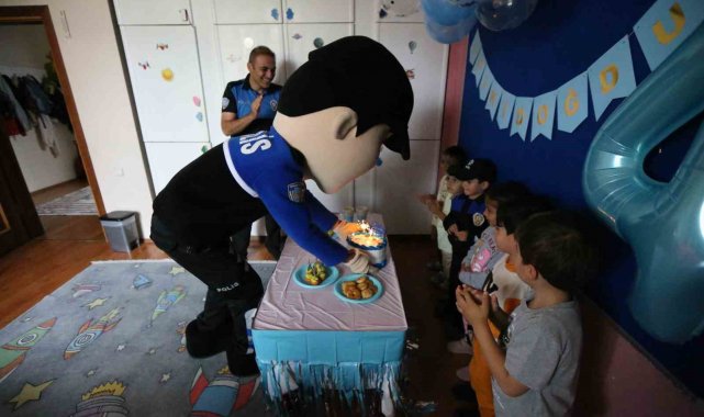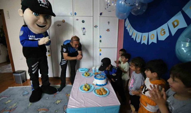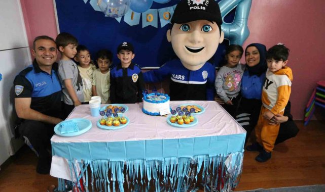 Kars'ta, polisleri çok seven ve büyüyünce polis olmak isteyen çocuğa polisler doğum günü sürprizi yaptı.