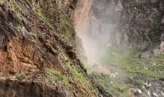Yağmurun etkisiye Akyaka Kanyonu'nda oluşan şelaleler vatandaşlar tarafından cep telefonuyla kaydedildi.