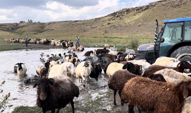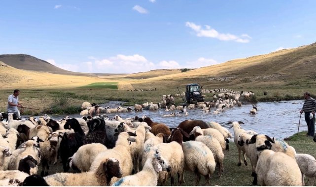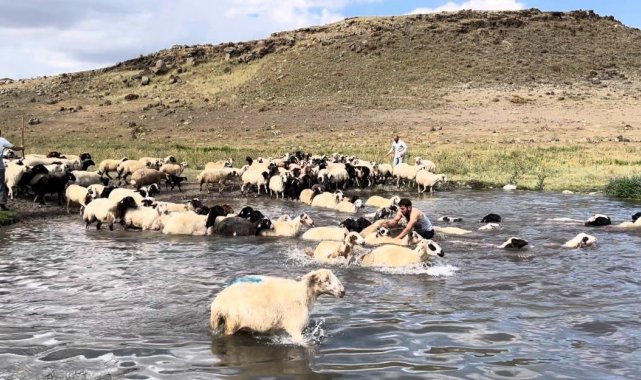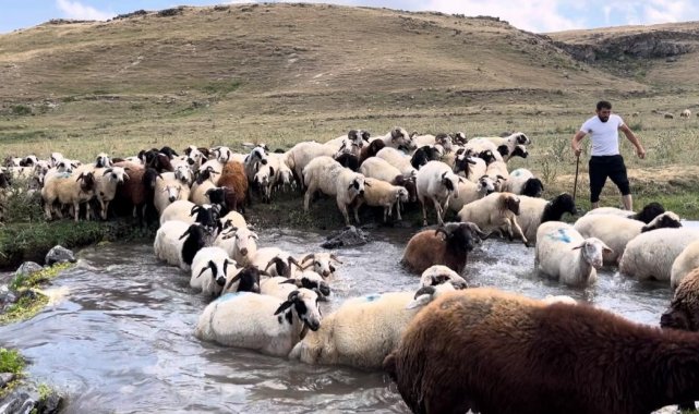 Kars'ta sıcak hava etkisini sürdürüyor. Hava sıcaklıklarının 34 dereceyi gördüğü kentte özellikle kırsal kesimlerde meralarda otlatılan küçükbaş hayvanlar, sıcaktan olumsuz etkileniyor. Köylüler hayvanlarının sıcak havadan etkilenmelerinin önüne geçmek için ise günde en az 3 defa serin suların coşkuyla aktığı derelere getirerek yüzdürüyor. Köylüler derelerde hem hayvanlarını serinletiyor. Hem de kendileri yüzerek serinlemeye çalışıyor.