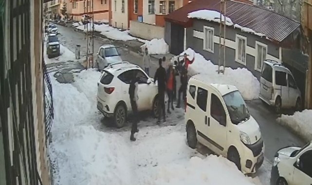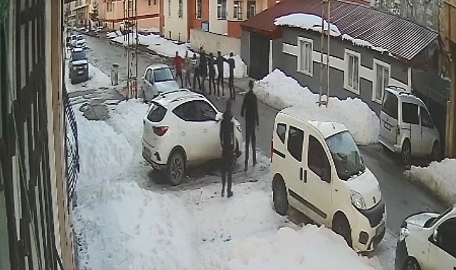 Güvenlik kamerasına yansıyan görüntülerde tarafların birbirlerine sopalarla saldırdığı, birbirlerine tekme tokat vurmaları ve kaçmaları yer alıyor.