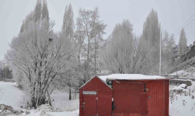 Kars'ta soğuktan ağaçlar kırağı tuttu