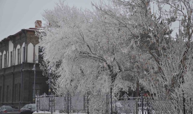 Hava sıcaklığının eksi 20 dereceye düştüğü Kars'ta doğa adeta buz kesti. Dondurucu soğuk nedeniyle ağaçlar kırağıyla kaplanırken, kent merkezi beyaza büründü.