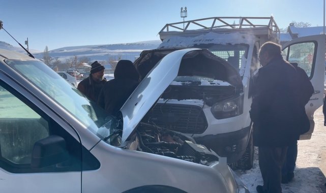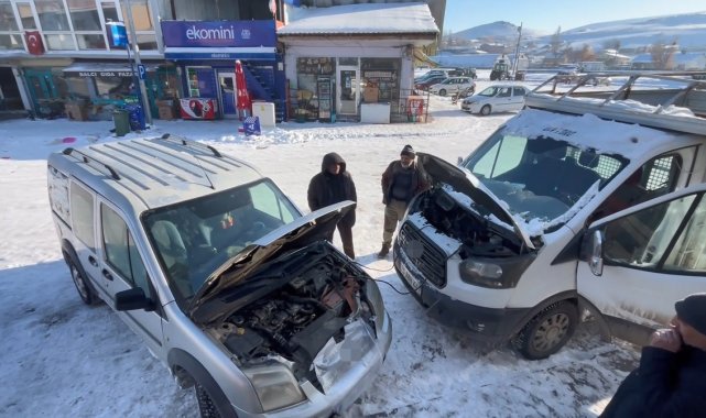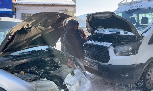 Kars'ta soğuktan hareket halinde araçlar dondu