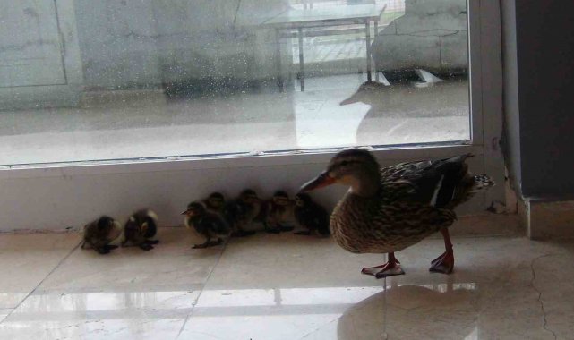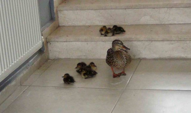 Kars'ta her yıl stadyumda kuluçkaya yatarak yavrularını dünyaya getiren yaban ördeği, yavrularıyla beraber zarar görmemeleri için Kars Çayı'na bırakıldı.