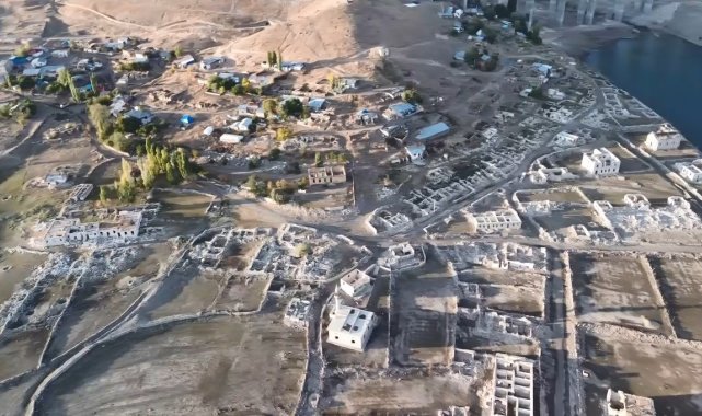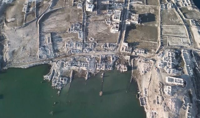 Su seviyesinin düşmesi sonucu, eski yerleşim yerinde bulunan köy evleri, cami, kilise ve diğer yapılar tekrar görünür hale gelirken, vatandaşlar, baraj gölünün yaklaşık 50 metre çekildiğini belirtti.