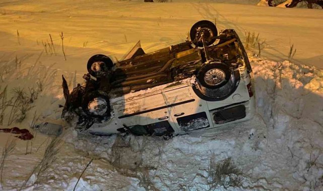 Kars'ta buzlanan yolda kayan hafif ticari araç takla atarak şarampole uçtu. Feci kazada 1'i kadın 2 kişi yaralandı.