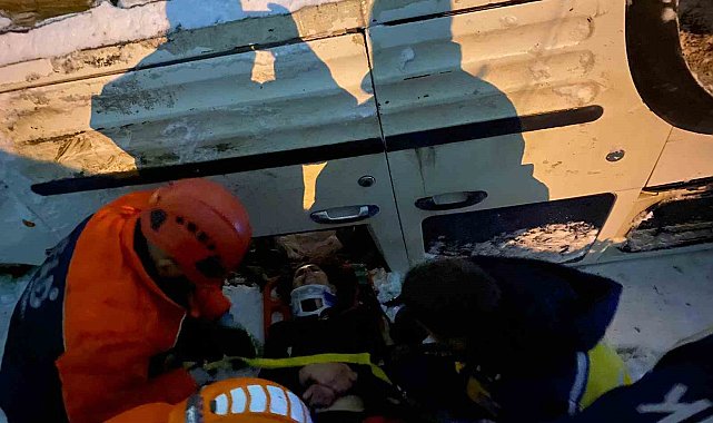 Takla atarak ters dönen hafif ticari araçta bulunan 2 kişi yaralandı. Kazayı gören vatandaşlar durumu 112 Acil Çağrı Merkezi'ne bildirdi. Olay yerine AFAD, itfaiye, polis ve sağlık ekipleri sevk edildi.