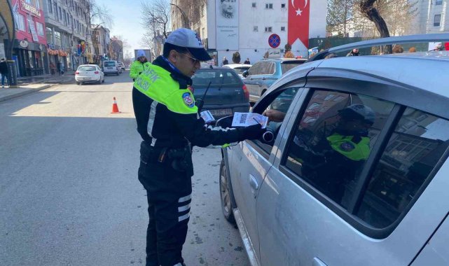Kars Emniyet Müdürlüğü Trafik Denetleme Şube Müdürlüğü ekiplerince kent genelinde sürdürülen çalışmalar çerçevesinde sürücüler ve yayalar trafik kurallarına uymaları konusunda uyarılırken, bilinçlendirme amacıyla broşür dağıtımı yapıldı.