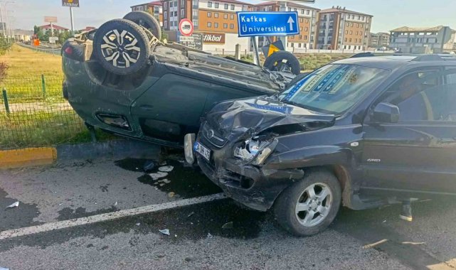Kaza; Kars-Erzurum karayolu Havaalanı Kavşağında meydana geldi.Kars-Erzurum karayolunda seyir halindeki otomobil ile havaalanından Kars'a seyir halindeki otomobil, kavşakta çarpıştı. Çarpışmanın şiddetiyle bir otomobil sırt üstü devrildi. Kazada 2 kişi yaralandı.